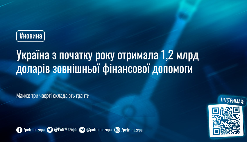 Україна з початку року отримала 1,2 млрд доларів зовнішньої фінансової допомоги