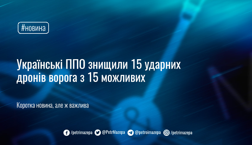 Українські ППО знищили 15 ударних дронів ворога з 15 можливих