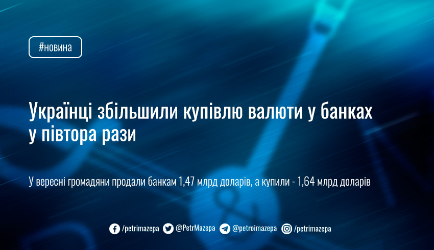 Громадяни України у вересні продали комерційним банкам готівкову та безготівкову валюту на 1,47 мільярда доларів (в еквіваленті) і купили на 1,64 мільярда.