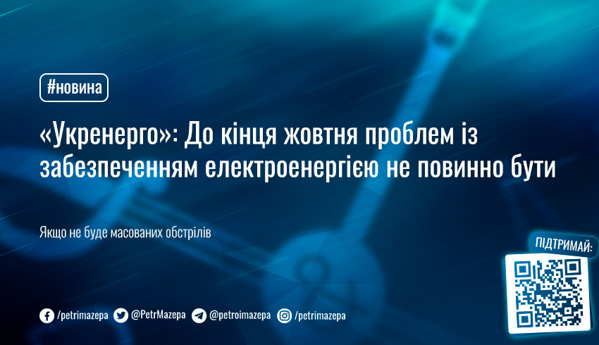 «Укренерго»: До кінця жовтня проблем із забезпеченням електроенергією не повинно бути