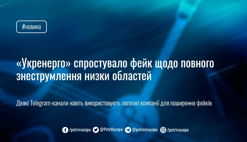 «Укренерго» спростувало фейк щодо повного знеструмлення низки областей