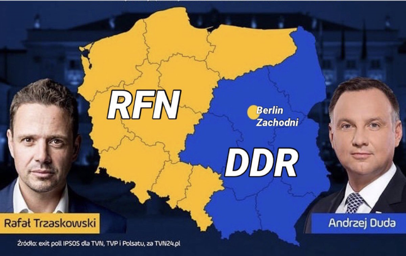 Великий градус емоційного напруження та поляризації польського суспільства напередодні президентських виборів був помітний навіть із Києва. Розпач окремих прихильників опозиції після програшу Р.Тшасковського часом зашкалював, поширювалися емоційні заклики до однодумців бойкотувати продукцію, не їздити на відпочинок до тих регіонів, мешканці яких підтримали А.Дуду. Знову активізувалися розмови про історичну Польщу А та Польщу В (до речі, як наслідки вже згаданих поділів першої Речі Посполитої), були притягнуті карти з візуальною аналогією територіального розподілу голосів до ФРН та НДР за часів СРСР.