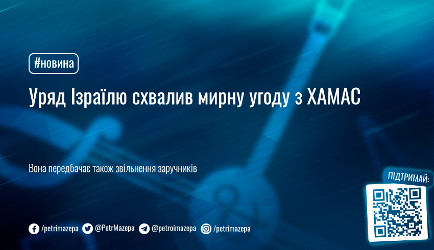 Уряд Ізраїлю вчора, 18 січня, схвалив угоду про перемир'я з ХАМАС, що включає припинення вогню та звільнення ізраїльських заручників в обмін на палестинських в'язнів.