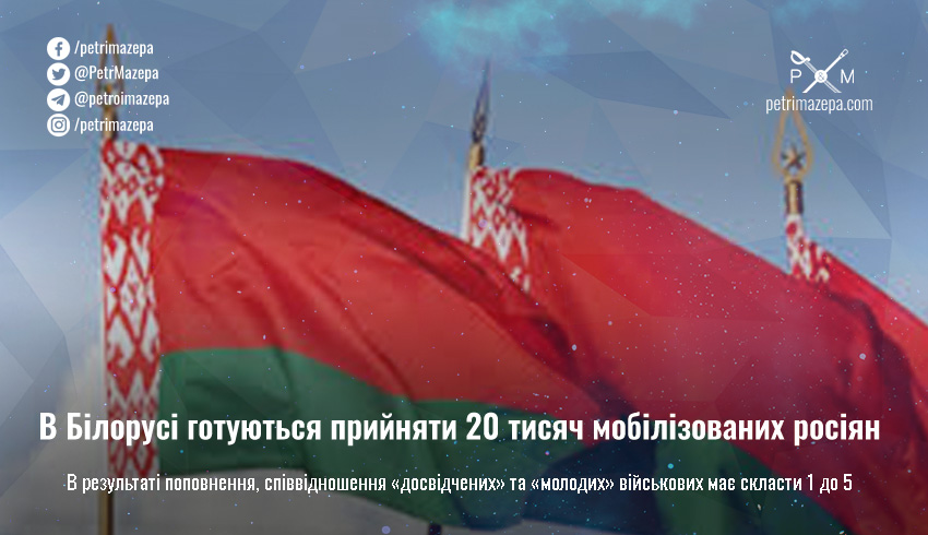 В Білорусі готуються прийняти 20 тисяч мобілізованих росіян. В результаті поповнення, співвідношення «досвідчених» та «молодих» військових має скласти 1 до 5.