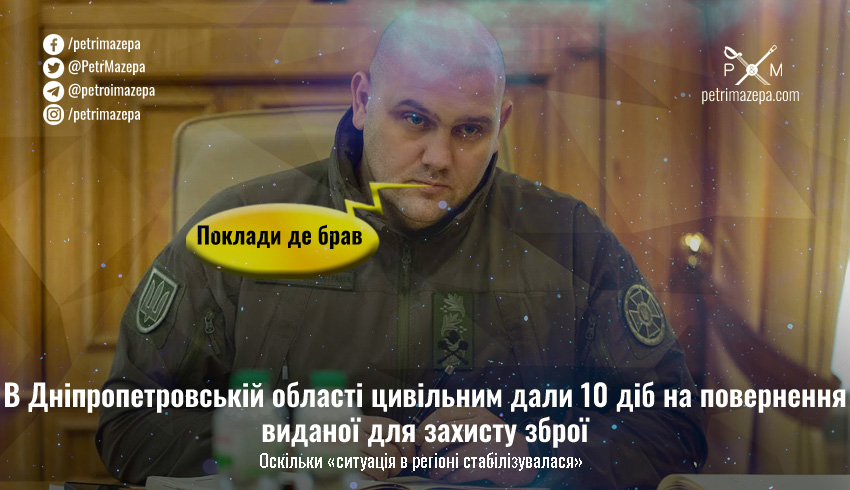 В Дніпропетровській області цивільним дали 10 діб на повернення виданої для захисту зброї