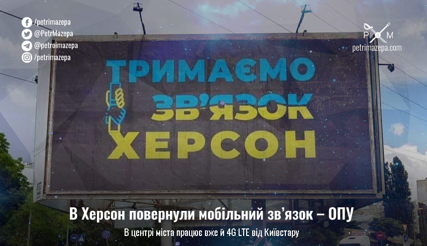 У Херсон вже повернули мобільний зв’язок. Про це повідомляє заступник глави ОПУ Кирило Тимошенко та голова Херсонської ОВА Ярослав Янушевич.