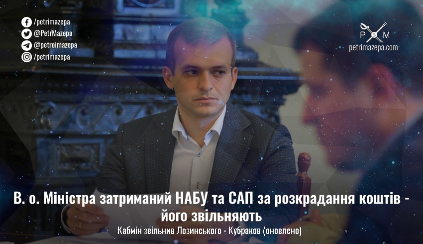 В. о. Міністра затриманий НАБУ та САП за розкрадання коштів - його звільняють