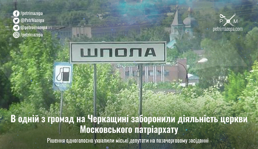 На території Шполянської громади Черкащини заборонили діяльність церкви Московського патріархату. Відповідне рішення одноголосно ухвалили міські депутати на позачерговому засіданні сесії.