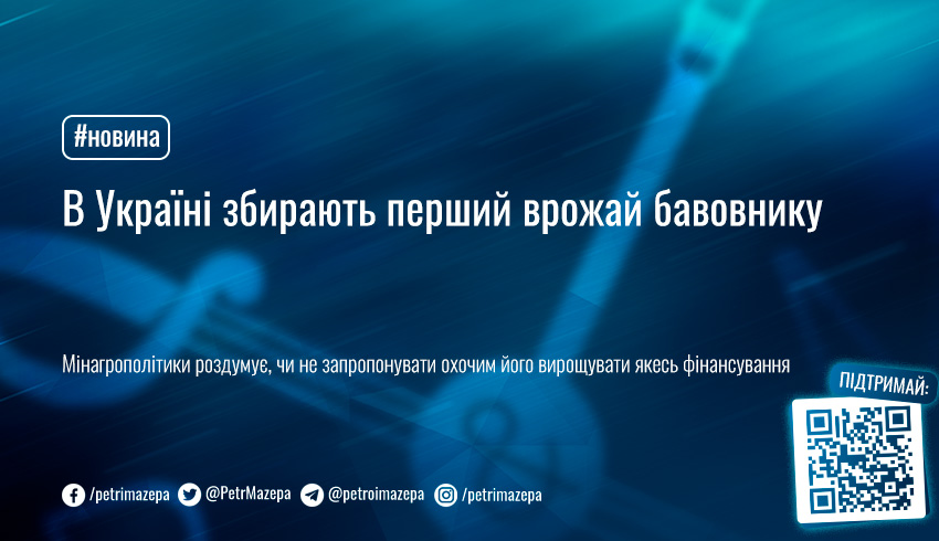 Для фермерів, які займатимуться вирощуванням бавовнику, Мінагрополітики планує запровадити відповідні програми фінансування.