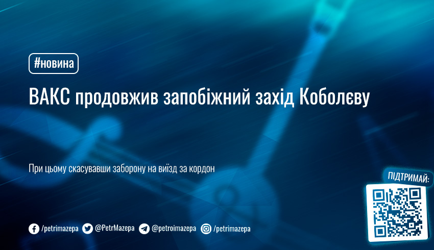 ВАКС уточнює, що суд частково задовольнив клопотання САП: продовжив запобіжний захід у вигляді зобов'язань ще на один місяць, проте скасував заборону на виїзд за кордон без дозволу. Та Коболєв все одно не зможе виїхати з України, бо здав паспорти.