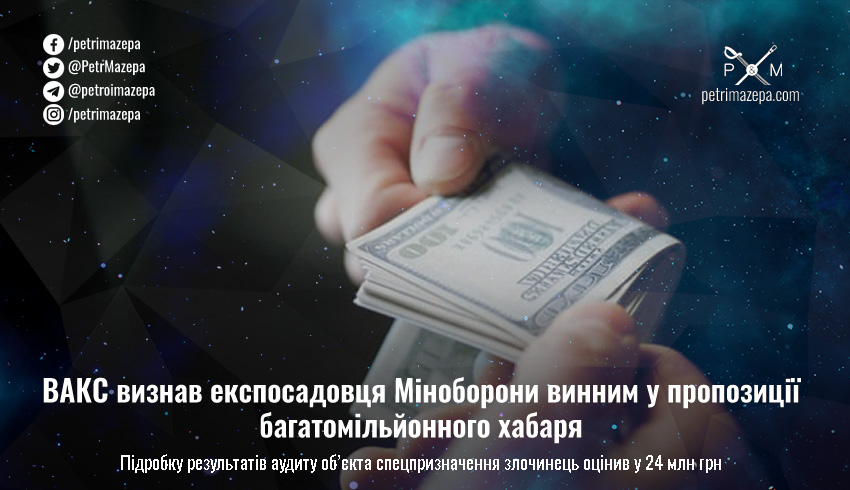 ВАКС визнав експосадовця Міноборони винним у пропозиції багатомільйонного хабаря