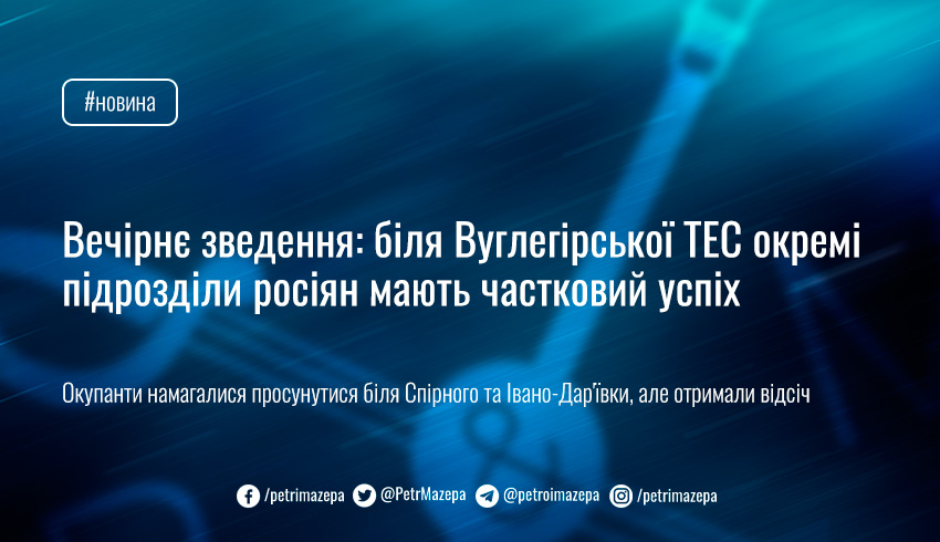 Вечірнє зведення: біля Вуглегірської ТЕС окремі підрозділи росіян мають частковий успіх
