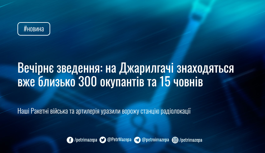 Вечірнє зведення: на Джарилгачі знаходяться вже близько 300 окупантів та 15 човнів