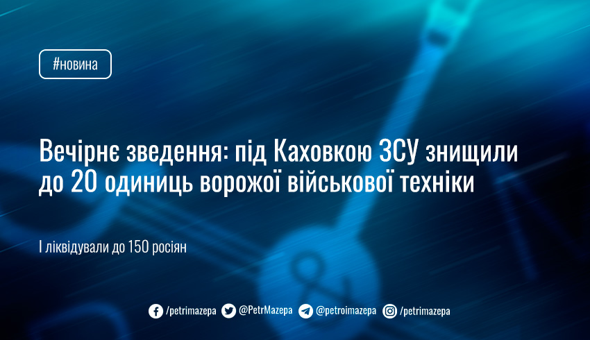 Вечірнє зведення: під Каховкою ЗСУ знищили до 20 одиниць ворожої військової техніки