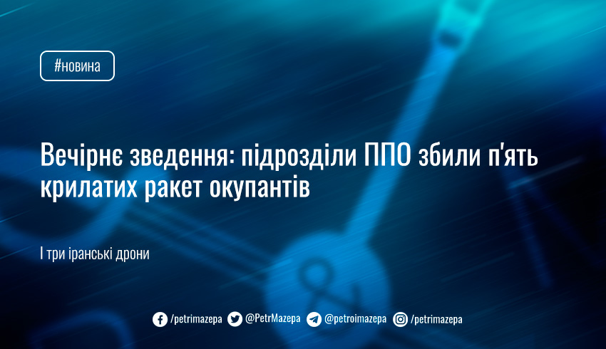 Вечірнє зведення: підрозділи ППО збили п'ять крилатих ракет окупантів