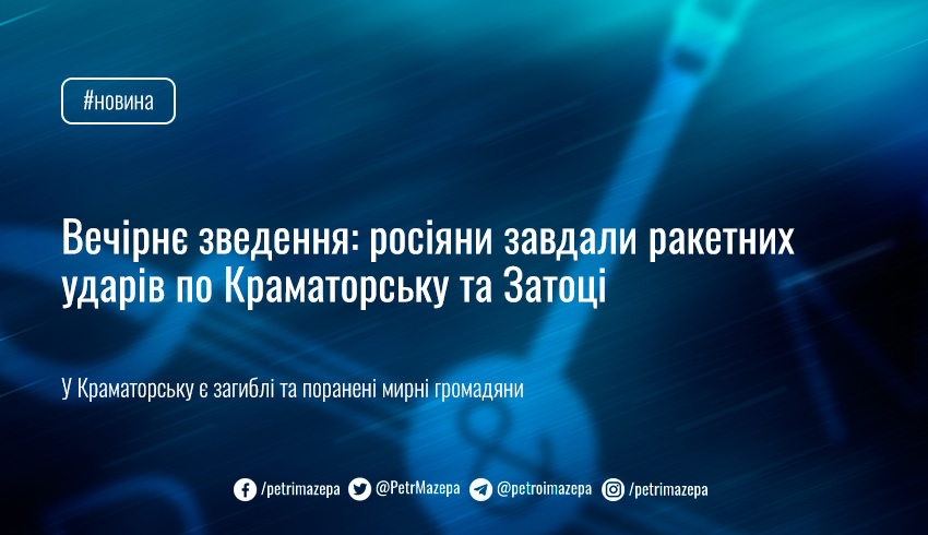 Вечірнє зведення: росіяни завдали ракетних ударів по Краматорську та Затоці