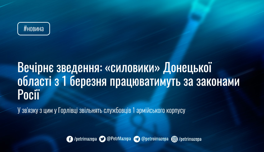 Вечірнє зведення: «силовики» Донецької області з 1 березня працюватимуть за законами Росії