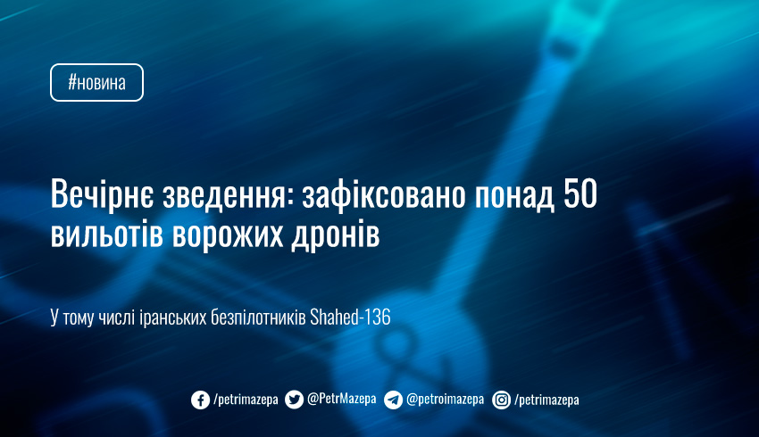 Вечірнє зведення: зафіксовано понад 50 вильотів ворожих дронів