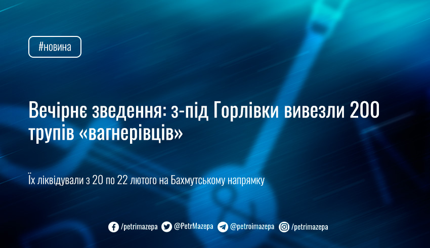 Біля Горлівки 23 лютого росіяни провели виїзну експертизу близько 200 трупів «вагнерівців» без офіційного оформлення. Їх ліквідували в період з 20 по 22 лютого на Бахмутському напрямку. Трупи вивезли у напрямку Новошахтинської.