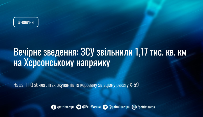 Вечірнє зведення: ЗСУ звільнили 1,17 тис. кв. км на Херсонському напрямку