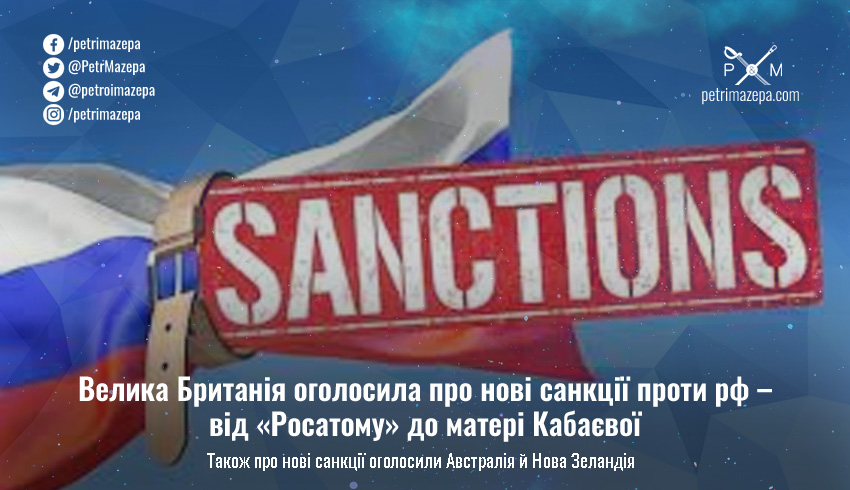 Велика Британія оголосила про нові санкції проти рф – від «Росатому» до матері Кабаєвої