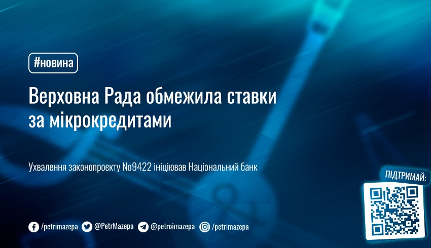 Верховна Рада сьогодні, 22 листопада, ухвалила в другому читанні й цілому законопроєкт №9422 про обмеження ставок за мікрокредитами.