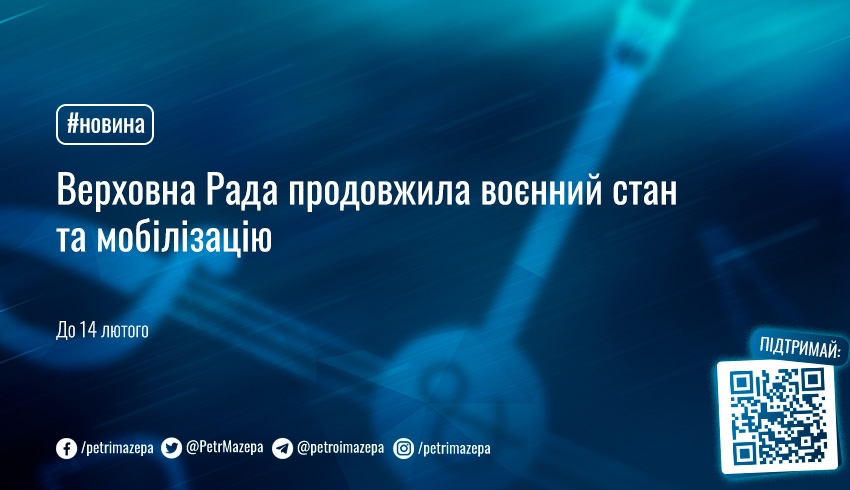 Як повідомив депутат «Європейської солідарності» Олексій Гончаренко, парламент також продовжив загальну мобілізацію на такий самий період.