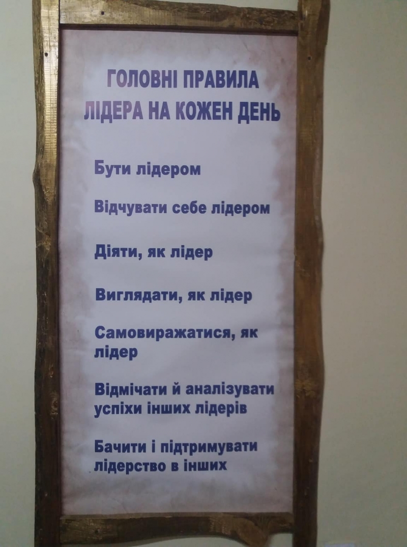 На стіні одного з військових навчальних закладів, ймовірно з метою формування військових лідерів, повісили плакати з «Правилами лідера на кожний день»: