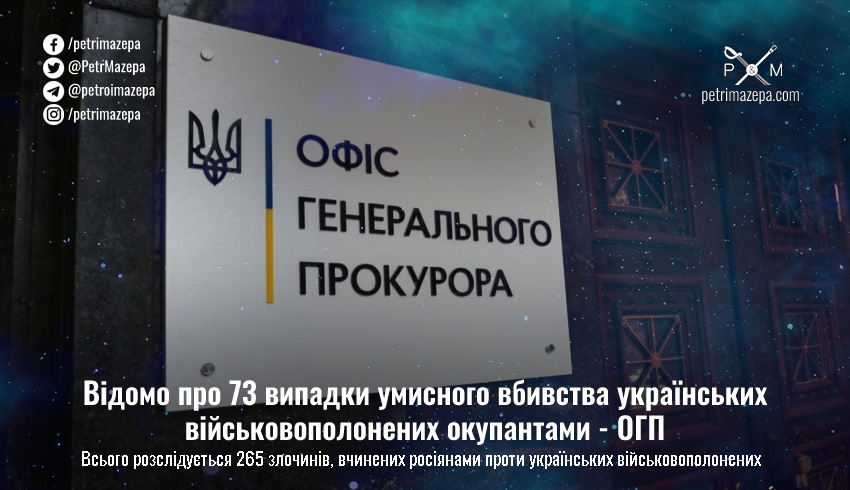 Офісу генпрокурора України наразі відомо про 73 випадки умисного вбивства українських військовополонених російськими окупантами. А всього розслідується 265 злочинів, вчинених росіянами проти українських військовополонених.