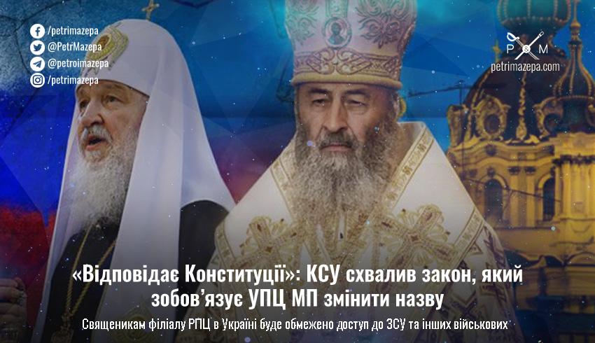 Конституційний Суд розглянув законопроект щодо змін до Закону України, які зобов’язують релігійні організації вказувати свою повну назву — саме того закону, згідно з яким УПЦ МП зобов’язана вказати, що вона має стосунок до ворога. КСУ дійшов висновку, що ці зміни є конституційними.
