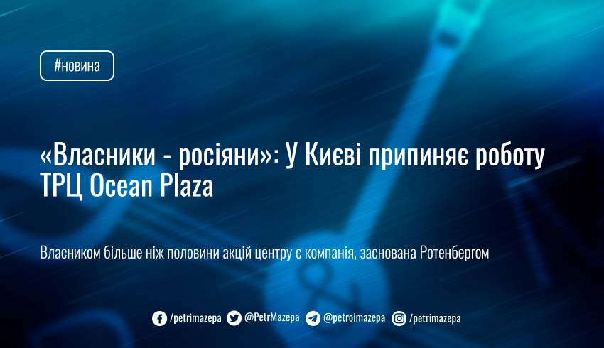 Торговельний центр Ocean Plaza у Києві припиняє свою роботу. Про це повідомляє «Економічна правда». ТРЦ досі володіє компанія, серед засновників котрої друг путіна, олігарх Аркадій Ротенберг.