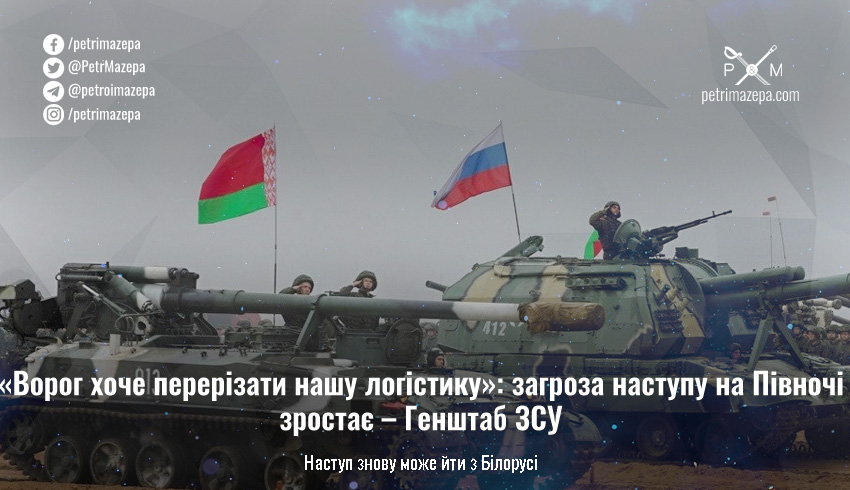 Генеральний штаб ЗСУ повідомив, що знову зростає загроза наступу з Білорусі — тепер метою нападу з території Білорусі може бути знищення логістичних артерій, через які йде допомога від західних партнерів.