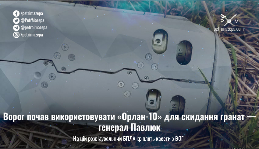 Ворог почав використовувати «Орлан-10» для скидання гранат — генерал Павлюк