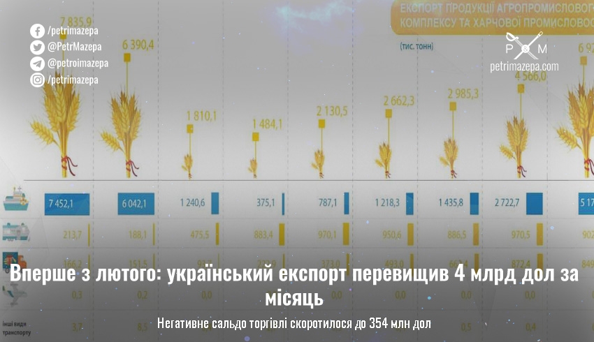 - 15 вересня Тарас Качка повідомив, що дефіцит торгівлі товарами скоротився до 111 млн доларів — тоді ми наводили список того, що Україна станом на вересень експортує.