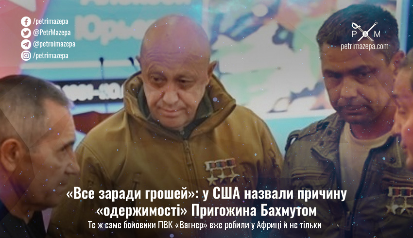 Є ознаки того, що саме фінансові мотиви є причиною «одержимості» Пригожина саме Бахмутом, додали посадовці США. Раніше найманці з пригожинської ПВК «Вагнер» вже робили те саме у ЦАР, Малі, Судані, та інших країнах — вони заробляли гроші на природних ресурсах інших країн, щоб фінансувати війну. Росія, звісно, всі ці факти заперечує.