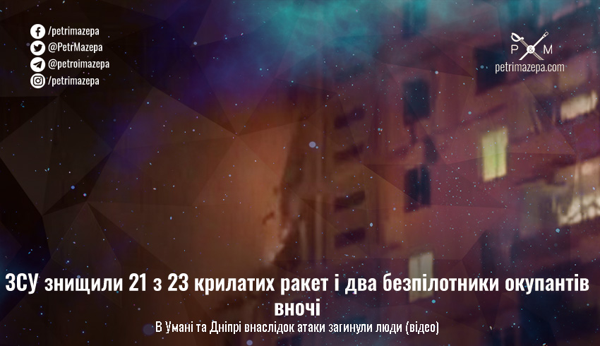 Під час нічної повітряної тривоги загарбники вдарили крилатою ракетою по житловому дев'ятиповерховому будинку в Умані, вже відомо про 7 загиблих та 17 поранених, передає «Українська правда».