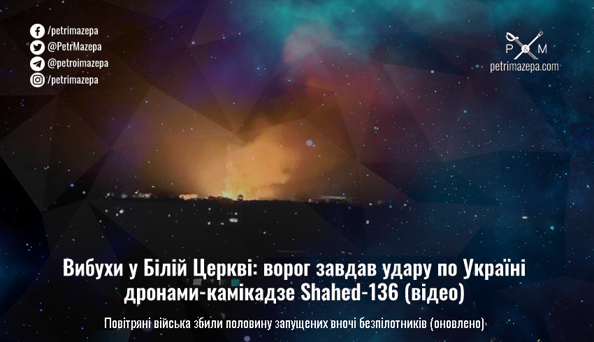 Вибухи у Білій Церкві: ворог завдав удару по Україні дронами-камікадзе Shahed-136 (відео)