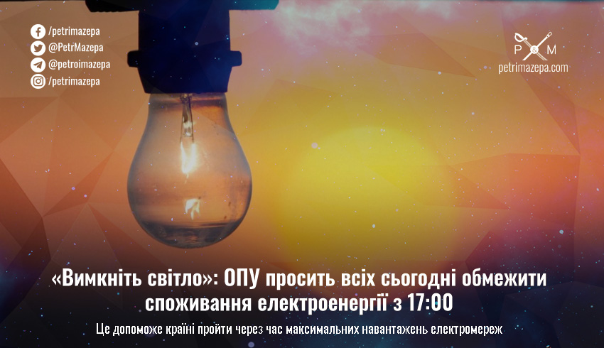 «Вимкніть світло»: ОПУ просить всіх сьогодні обмежити споживання електроенергії з 17:00