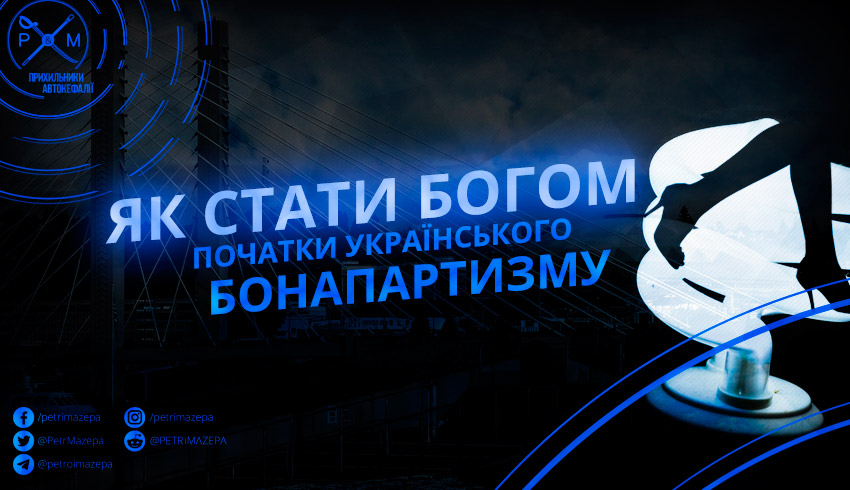 Коли народ розчаровується у собі, у власних творчих силах, він починає шукати психотерапевта-наставника-вождя, який за помірну плату «вирішить усі його проблеми». Так відбувається самогубство демократії, яке породжує у Римі — принципат, (у Франції — бонапартизм) — з його вірою у божественний геній імператора. З християнської точки зору, це не надто й позитивненько… (Господеві Богові своєму вклоняйся, і служи Одному Йому!» (Мт 4:10) і т.п.), але що поробиш? На жаль, сьогодні в Україні з неминучістю народжується свій людинобог. Раніше ми розміщували саркастичні матеріали про осакралення богоданого начальства на РФ (слухання на роль антихриста), але тепер вимушені звернутись до вітчизняної тематики.