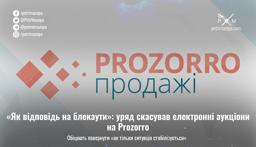 У Кабінеті міністрів повідомили, що «через постійні обстріли з боку рф об’єктів енергетичної інфраструктури не всі учасники торгів у системі електронних закупівель Prozorro мають можливість брати участь в електронних аукціонах». Тому ці аукціони тимчасово скасовуються, а замість них будуть проводитися звичайні торги без аукціону.