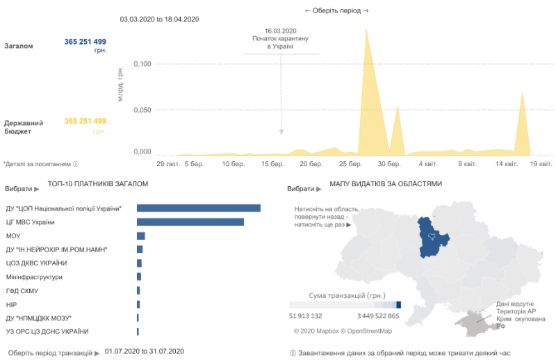 Виходячи з інформації Рахункової палати, за період з 16 березня по 18 квітня не було здійснено жодного видатку для МОЗ з метою забезпечення лікарень (хоча б тих, які приймали хворих) засобами захисту. Також не було й видатків з місцевих бюджетів на ці заходи.