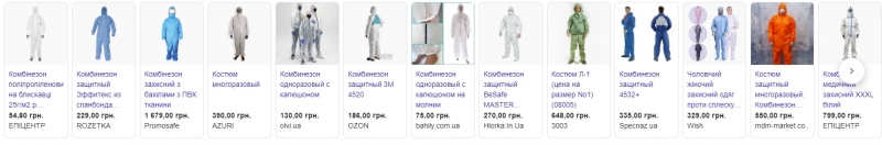 - Костюм біологічного захисту. 250 тисяч штук — 69,75 млн грн (середня вартість за шт. 279 грн);