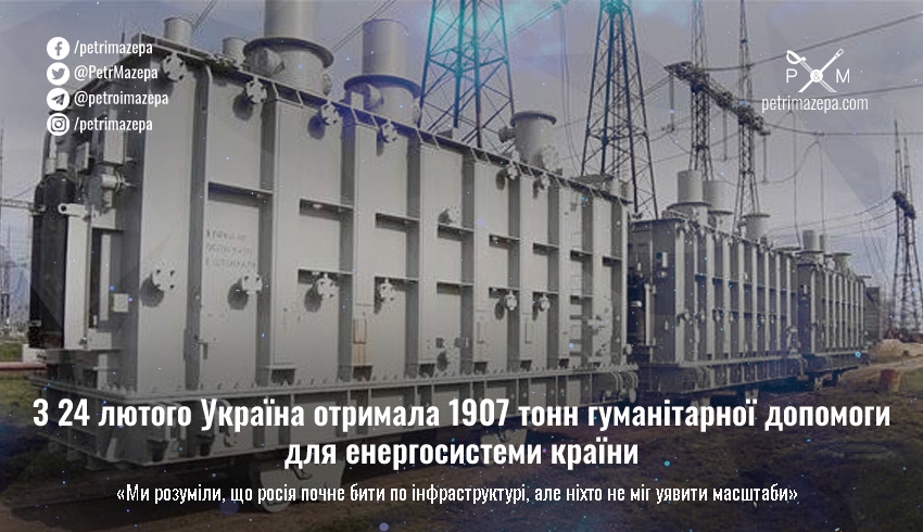 Україна готувалася до того, що росія битиме по енергетичній інфраструктурі, але масштаби атак стали неочікуваними. Зроблених запасів не вистачило, але країни-партнери продовжують допомагати нам. З 24 лютого вони вже доставили 1907 тонн гуманітарної допомоги для енергосистеми України.