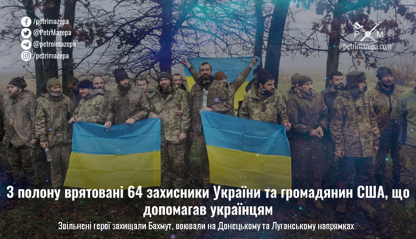 З полону вдалось визволити 64 захисників України, які воювали на Донецькому та Луганському напрямках, брали участь в обороні Бахмута, та одного громадянина США, який допомагав українцям.