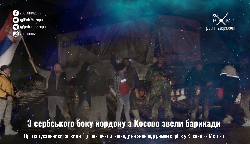 Група з близько 20 осіб, частина яких одягнута в камуфляж, ввечері 27 грудня заблокувала прикордонний перехід Мердаре між центральною Сербією та Косово з сербського боку.
