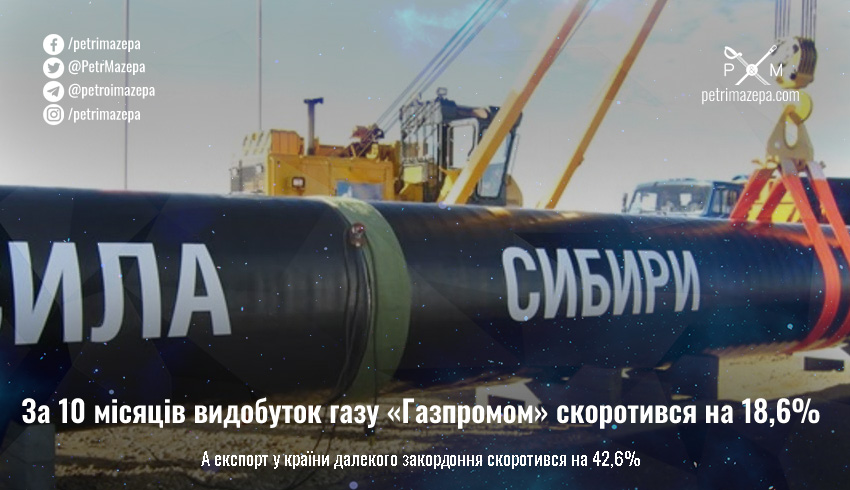 Російській «Газпром» розповів, як у нього майже все падає в цьому році (з цифрами і процентами), а також — як зростає лише експорт газу до Китаю через «Силу Сибіру» (без цифр та процентів).