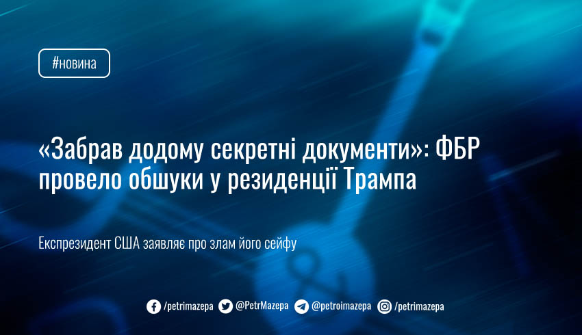 45-й президент США Дональд Трамп заявив, що його резиденція у Палм-Біч, Флорида, «в облозі», на неї «здійснили набіг та захопили» агенти ФБР, які навіть зламали його сейф. За даними джерел The New York Times, обшуки пов’язані з секретними матеріалами, які Трамп забрав із собою у приватну резиденцію, коли залишав Білий Дім.