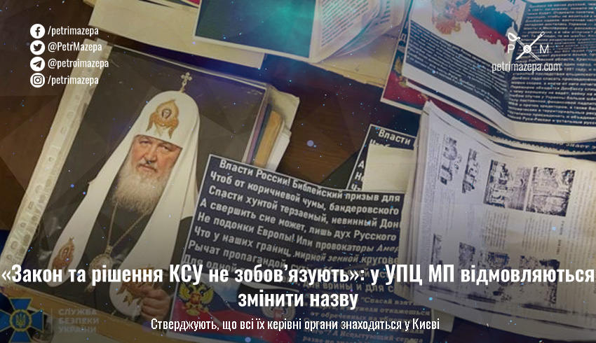 Там стверджують — «на сьогодні відсутні будь-які законні підстави для зміни назви релігійних організацій, що належать до Української Православної Церкви». Як пояснення цього у церкви заявляють, нібито, їх церква зареєстрована й заснована у Україні, а «її засновником є Собор УПЦ, її релігійний центр, як і всі органи управління, знаходяться в місті Києві». Тобто вони не зобов’язані вказувати росію у власній назві.