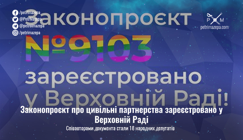 Законопроєкт про цивільні партнерства зареєстровано у Верховній Раді