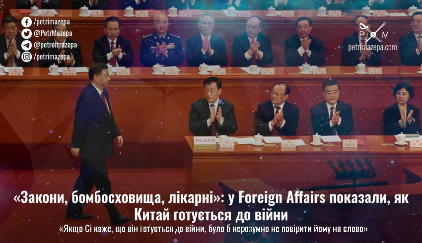 «Закони, бомбосховища, лікарні»: у Foreign Affairs показали, як Китай готується до війни